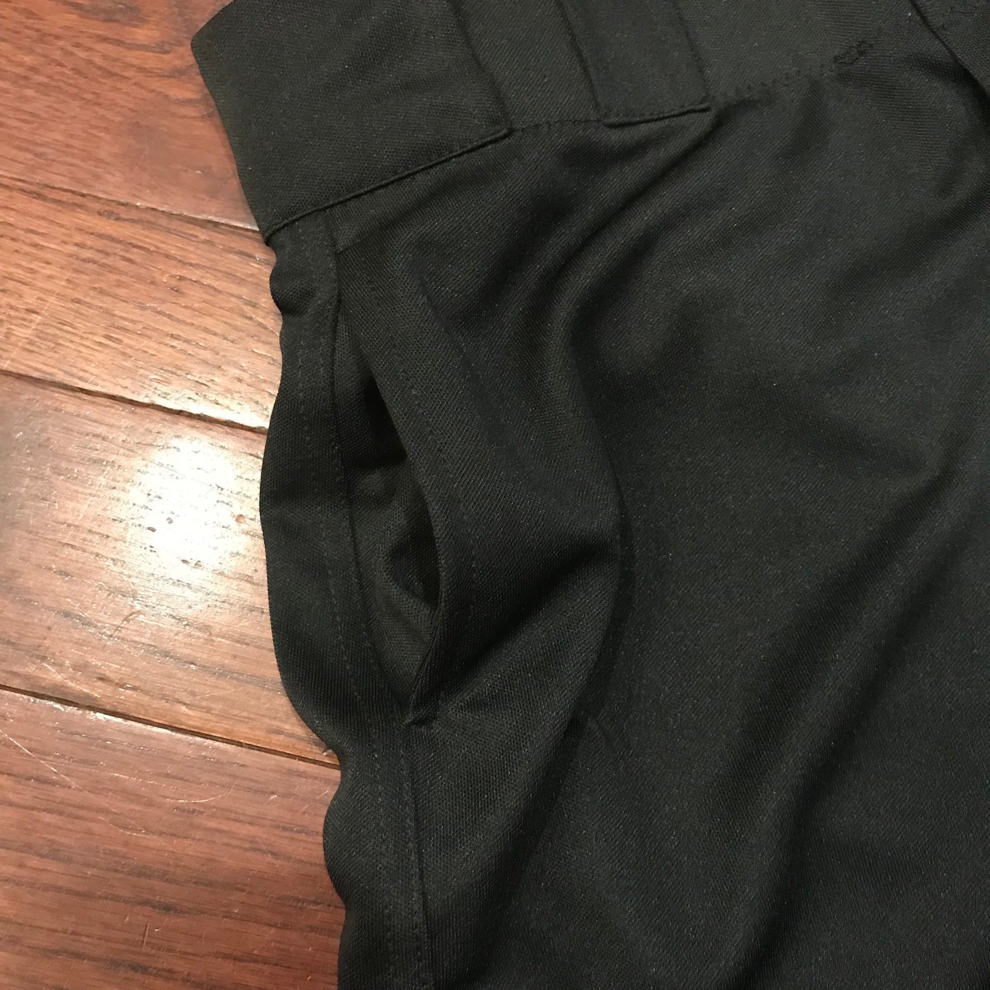 Loose fit. Slightly tapered legs. Reinforced knees. Front and back pockets.
