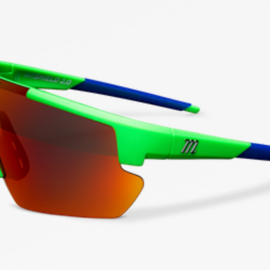 Marucci Shield 2.0 performance sunglasses are made specifically for on-field use with lenses produced by Carl Zeiss Vision, engineered to enhance clarity, improve visibility, and balance color perception to create higher performing on-field sunglasses. The Shield's single-lens design allows for full range of view on the field and includes additional interchangeable lens for easy personalization.